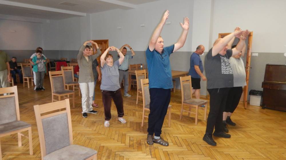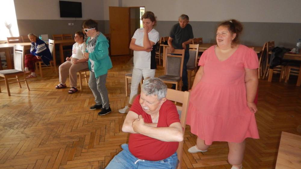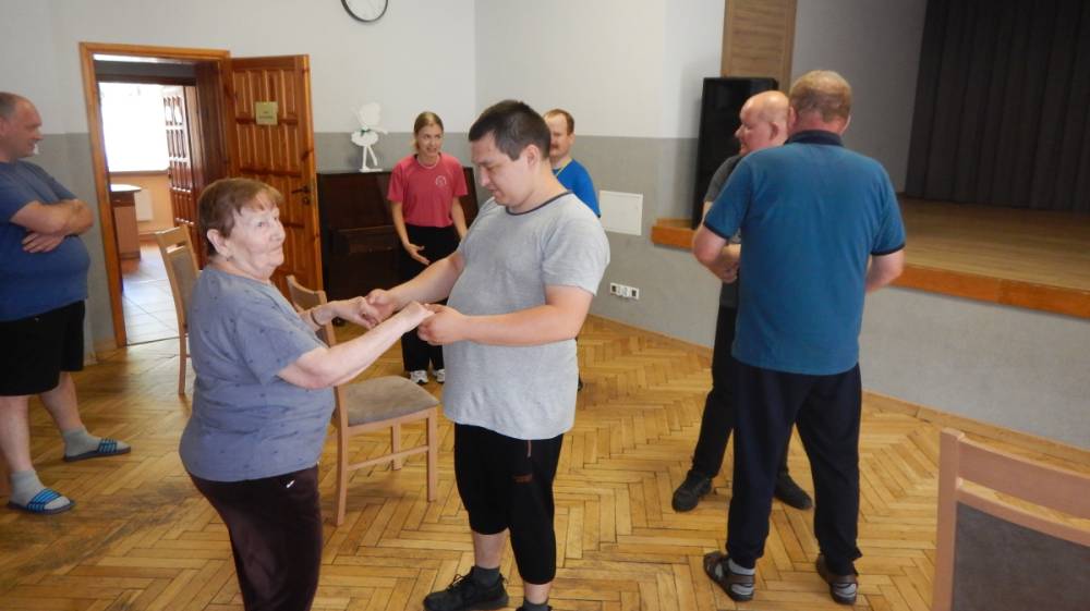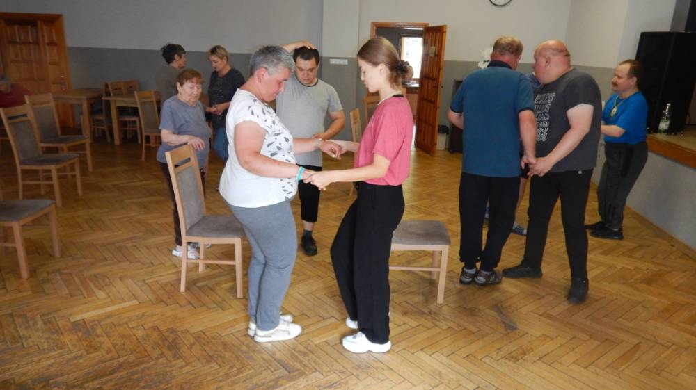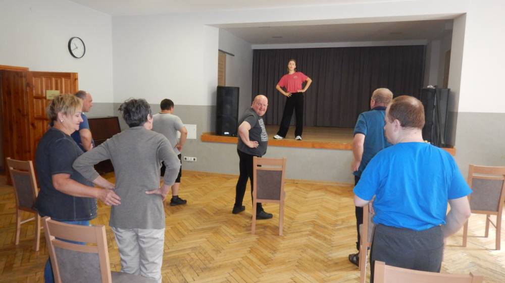 W dniu 17.07.2025 r. uczestnicy Środowiskowego Domu Samopomocy pod opieką terapeutów, udali się do Gminnego Ośrodka Upowszechniania Kultury i Sportu w Ostrówku na zajęcia taneczne z panią Kasią