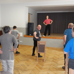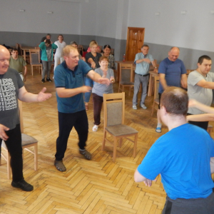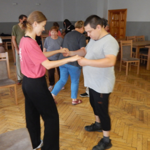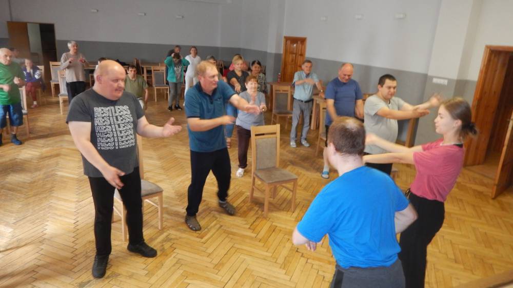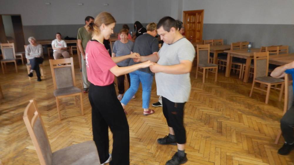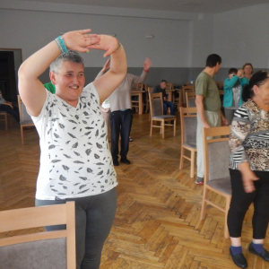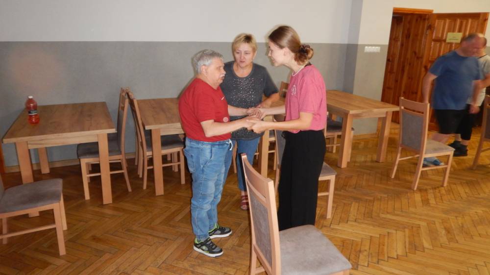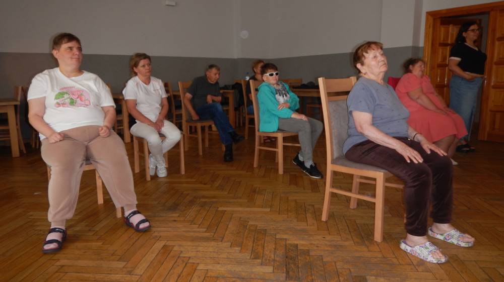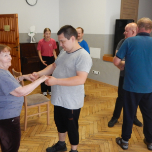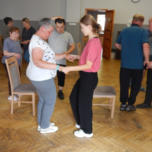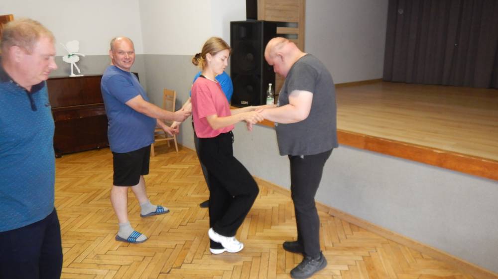 W dniu 17.07.2025 r. uczestnicy Środowiskowego Domu Samopomocy pod opieką terapeutów, udali się do Gminnego Ośrodka Upowszechniania Kultury i Sportu w Ostrówku na zajęcia taneczne z panią Kasią