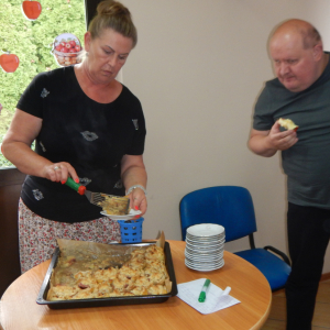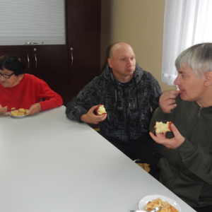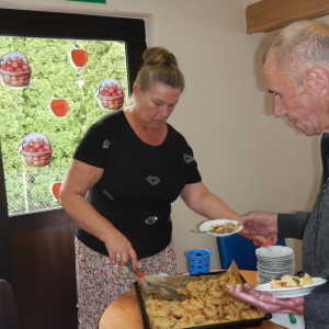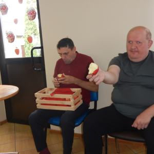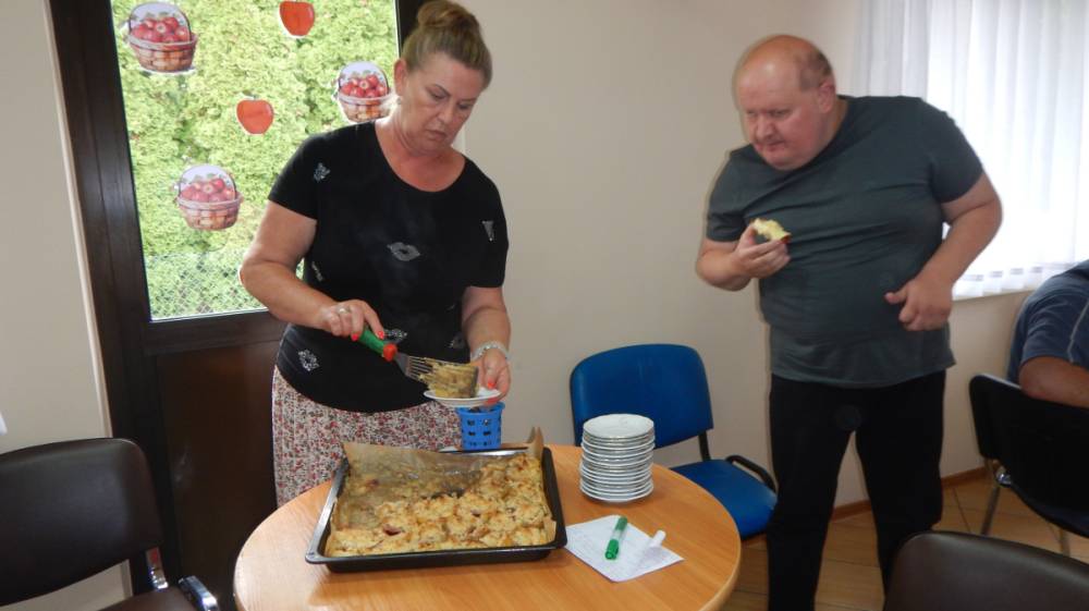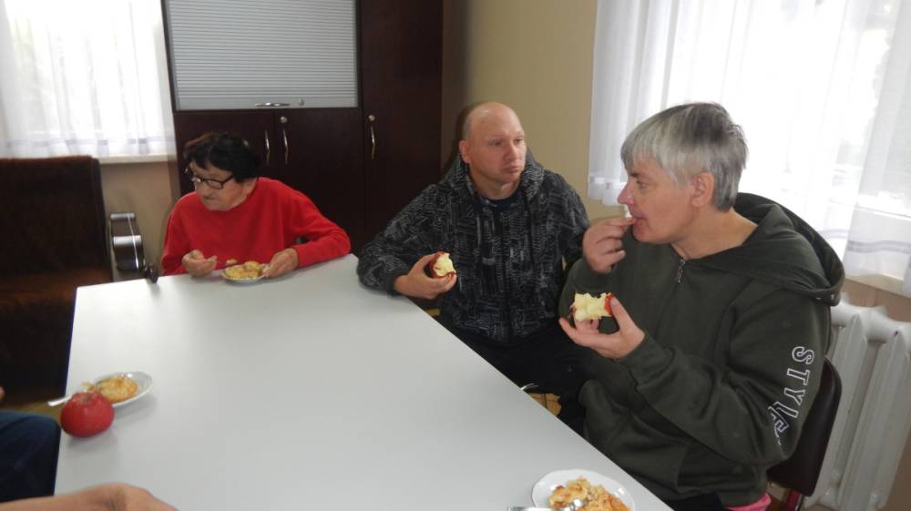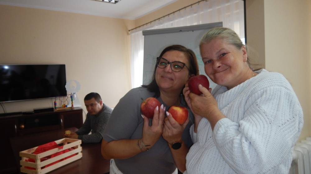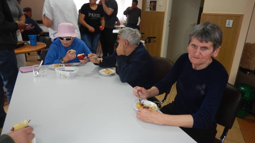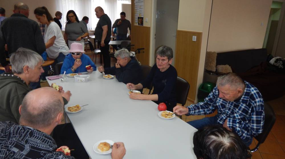 W dniu 12.09.2025 obchodziliśmy DZIEŃ JABŁKA. Podczas pogadanki na temat jabłka w roli głównej poruszone były tematy związane z zachęceniem wszystkich do spożywania jabłek jako zdrowej przekąski, uświadamianie o wartościach odżywczych jabłek, w tym ich wpływie na trawienie, układ krążenia, obniżanie cholesterolu, poprawienie kondycji skóry i kości. Poznaliśmy odmiany jabłek, ich pochodzenie oraz zastosowanie w kuchni. Podsumowaniem tego dnia było pieczone jabłko pod kruszonka wykonane w ramach treningu kulinarnego, które wszystkim bardzo smakowało. PALCE LIZAĆ.