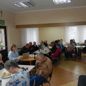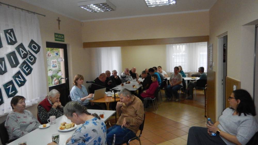 W dniu 17.10.2025r. w Środowiskowym Domu Samopomocy gościliśmy panią doktor Wioletę Komar - psychiatrę. Rozmowa z uczestnikami dotyczyła zdrowego stylu życia oraz jego wpływu na samopoczucie psychiczne i fizyczne. Pani doktor omówiła znaczenie zbilansowanej diety, odpowiedniej ilości snu oraz regularnej aktywności fizycznej. Uczestnicy aktywnie brali udział w spotkaniu, zadawali pytania i dzielili się własnymi doświadczeniami. Wizyta przebiegła w przyjaznej atmosferze i miała charakter edukacyjny oraz profilaktyczny.