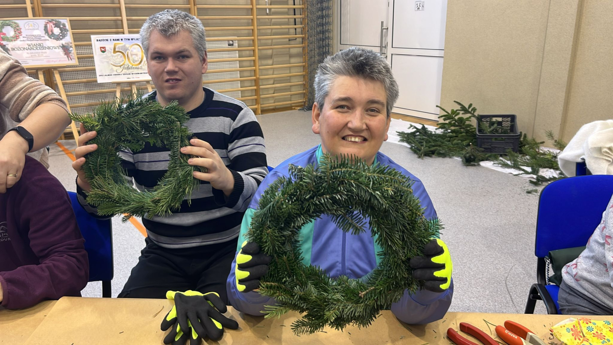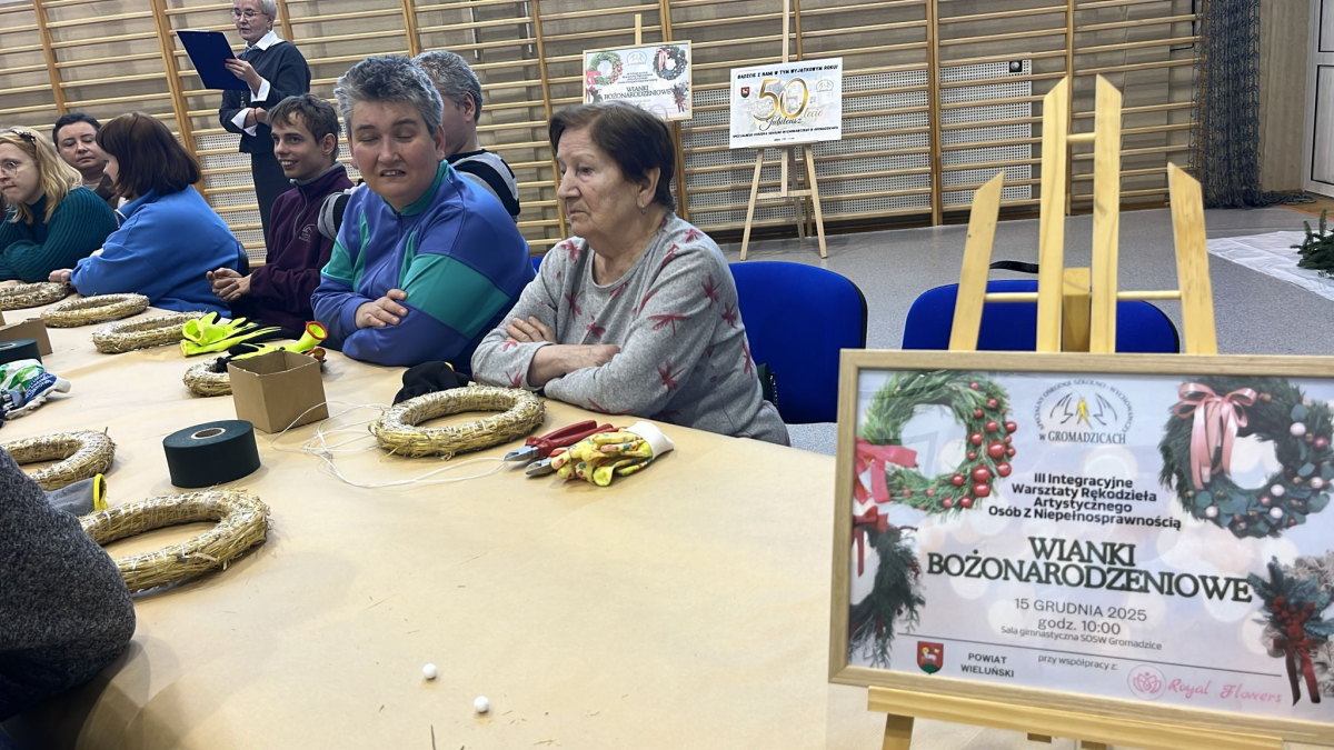 W dniu 15.12.2025r. reprezentanci Naszego Domu wzięli udział w III Integracyjnych Warsztatach Rękodzieła Artystycznego Osób z Niepełnosprawnością zorganizowanych przez Specjalny Ośrodek Szkolno - Wychowawczy w Gromadzicach. Podczas spotkania uczestniczyli w warsztatach wykonywania wianków bożonarodzeniowych. Uczestnicy mieli możliwość rozwijania swoich umiejętności manualnych oraz kreatywności, a także wspólnego spędzenia czasu. Zajęcia przebiegały w miłej i twórczej atmosferze, sprzyjającej integracji oraz wymianie doświadczeń.