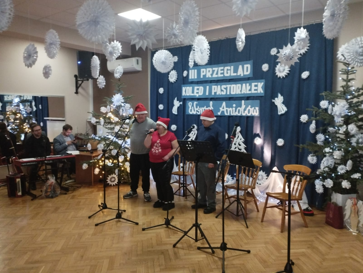W dniu 9.12.2025 uczestnicy Środowiskowego Domu Samopomocy w Ostrówku wzięli udział w III Przeglądzie Kolęd i Pastorałek „ WŚRÓD ANIOŁÓW” organizowanym przez Środowiskowy Dom Samopomocy w Sędziejowicach. Wydarzenie miało na celu podtrzymywanie tradycji bożonarodzeniowych, integrację oraz rozwijanie aktywności artystycznej uczestników. Uczestnicy zaprezentowali przygotowany repertuar kolęd i pastorałek, wykazując duże zaangażowanie oraz wysoki poziom przygotowania. Występy przebiegały w serdecznej i uroczystej atmosferze.