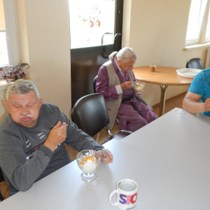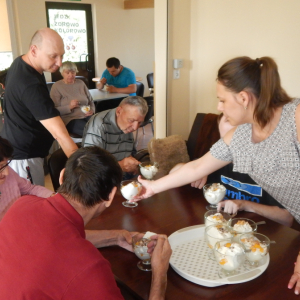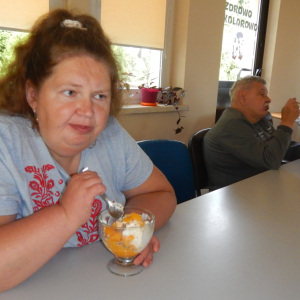 Tuż przed przerwą wakacyjną, w dniu 25.07.2025 r. odbyła się KAWIARENKA . Cykl spotkań, któremu towarzyszy wspólne czytanie zmienił formę na wspólne oglądanie filmu. Po seansie filmowym, każdy dostał przepyszny pucharek lodów. Był to czas spędzony w miłej atmosferze, której towarzyszyła wspólna integracja, rozmowy.