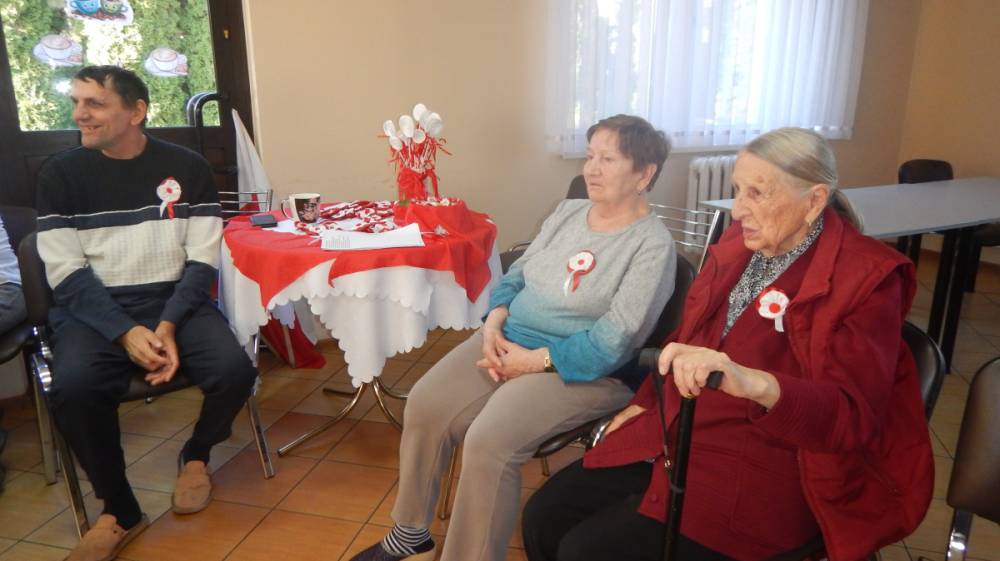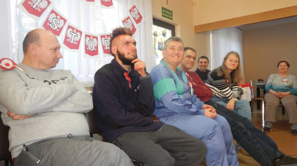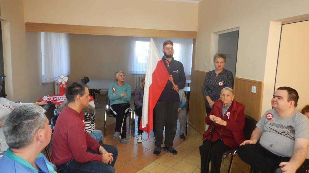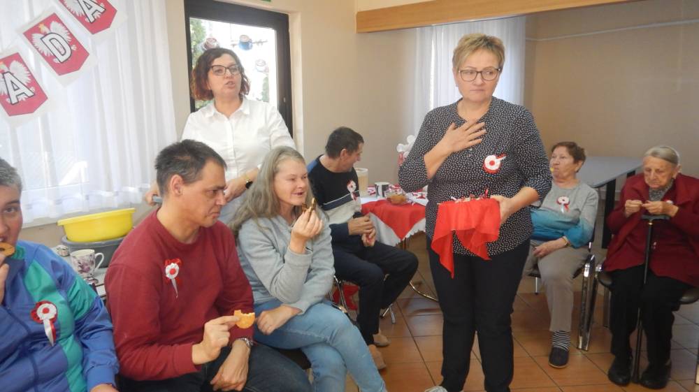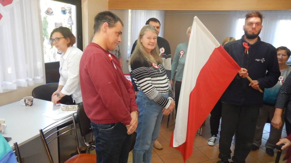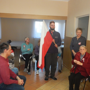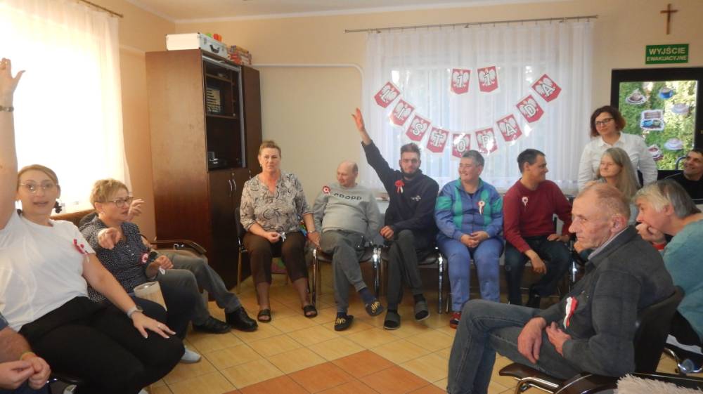 W dniu 07 listopada w Środowiskowym Domu Samopomocy odbyły się obchody Narodowego Święta Niepodległości. Celem spotkania było upamiętnienie 107 rocznicy odzyskania przez Polskę niepodległości oraz kształtowanie postaw patriotycznych wśród uczestników. W programie wydarzenia odbyło się wspólne odśpiewanie hymnu narodowego oraz prezentacja symboli narodowych. Uczestnicy z zaangażowaniem brali udział w przygotowanym konkursie dotyczącym ważnego dla polaków święta. Uroczystość przebiegła w podniosłej, a jednocześnie serdecznej atmosferze. Była cenną okazją do wspólnego przeżywania ważnego święta narodowego.