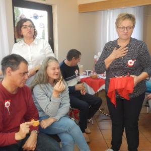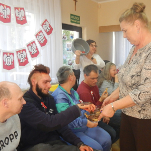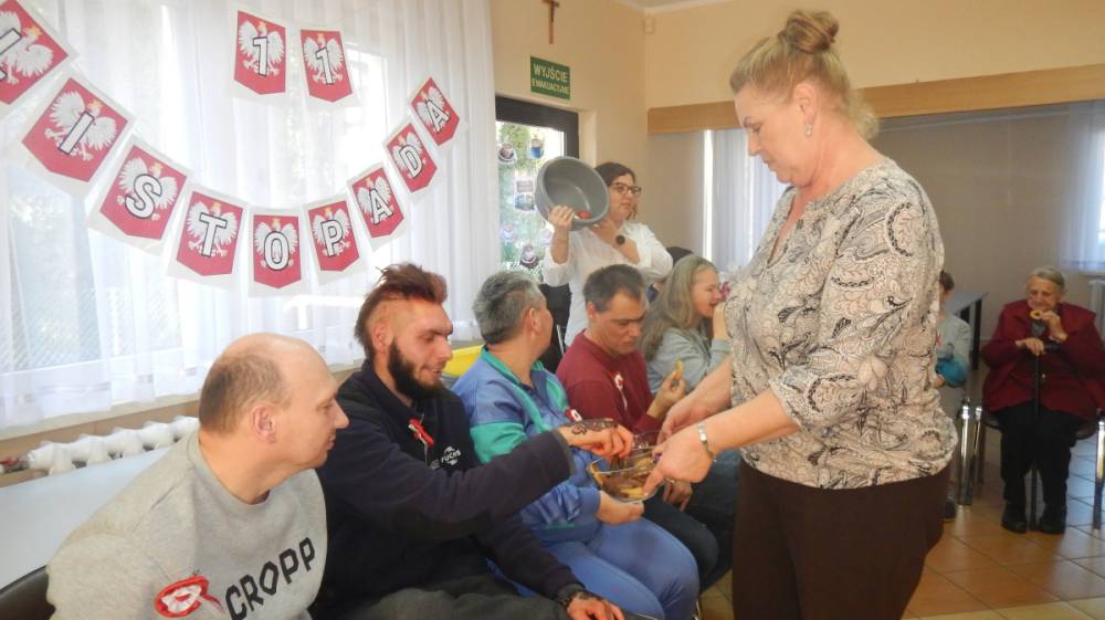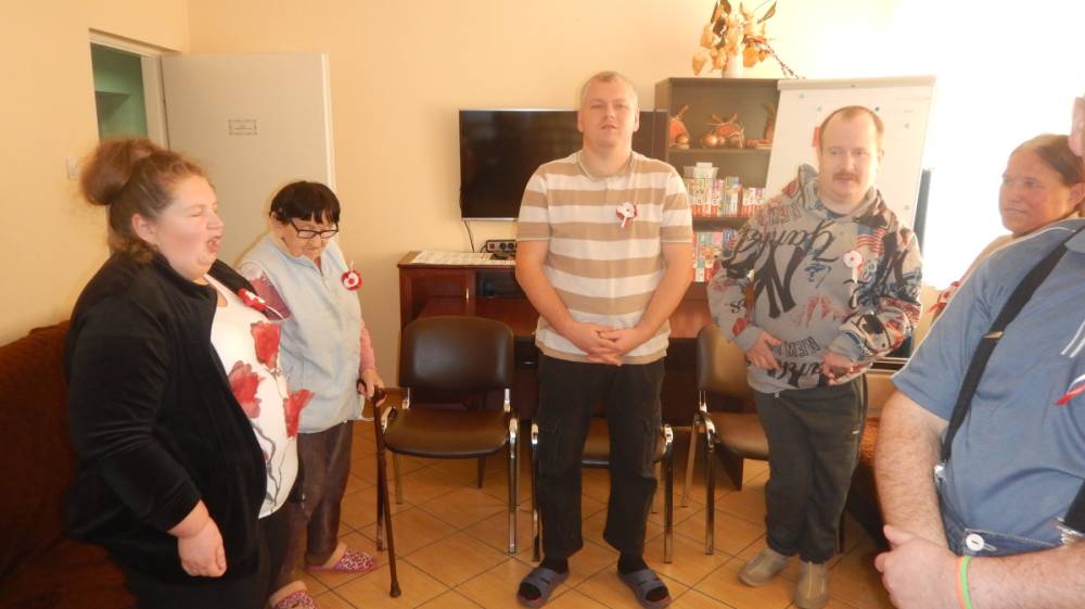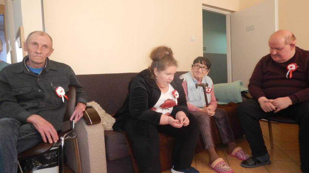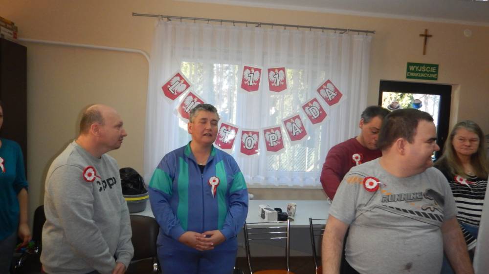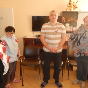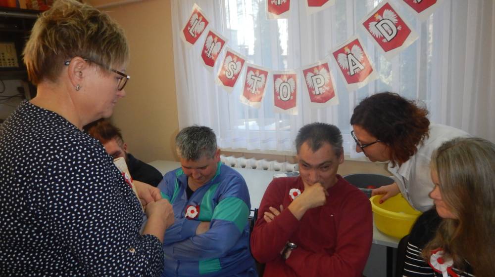 W dniu 07 listopada w Środowiskowym Domu Samopomocy odbyły się obchody Narodowego Święta Niepodległości. Celem spotkania było upamiętnienie 107 rocznicy odzyskania przez Polskę niepodległości oraz kształtowanie postaw patriotycznych wśród uczestników. W programie wydarzenia odbyło się wspólne odśpiewanie hymnu narodowego oraz prezentacja symboli narodowych. Uczestnicy z zaangażowaniem brali udział w przygotowanym konkursie dotyczącym ważnego dla polaków święta. Uroczystość przebiegła w podniosłej, a jednocześnie serdecznej atmosferze. Była cenną okazją do wspólnego przeżywania ważnego święta narodowego.