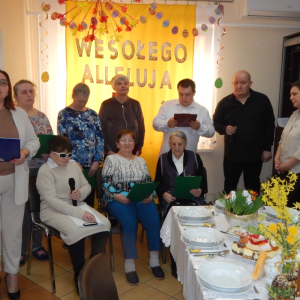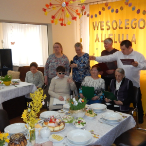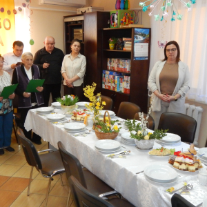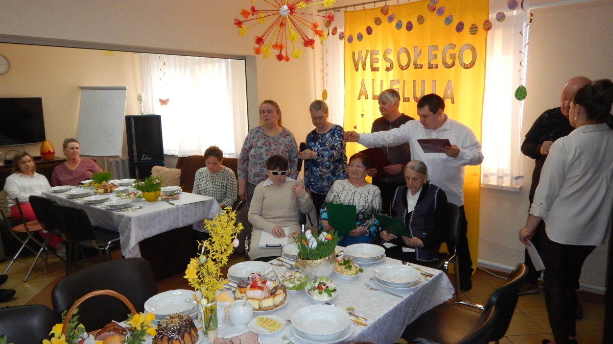 W dniu 2 kwietnia 2026 roku w naszym ośrodku odbyło się uroczyste Spotkanie Wielkanocne, które zgromadziło uczestników w ciepłej i serdecznej atmosferze. Był to wyjątkowy czas wspólnego świętowania, rozmów oraz pielęgnowania wielkanocnych tradycji. Uczestnicy mieli okazję spróbować tradycyjnych potraw, podzielić się życzeniami oraz spędzić czas w gronie współpracowników i zaproszonych gości.. Spotkanie przebiegło w miłej i radosnej atmosferze, sprzyjającej integracji oraz budowaniu relacji. Dziękujemy wszystkim za obecność i wspólnie spędzony czas.