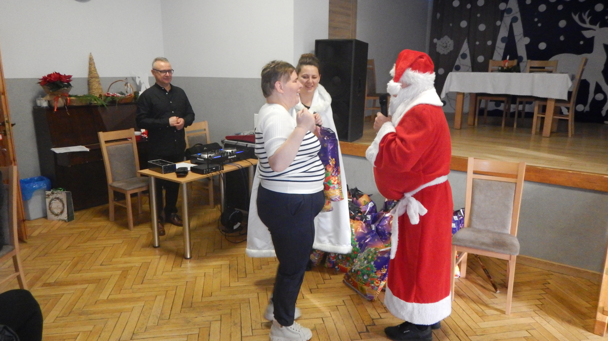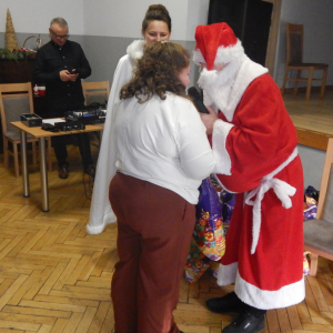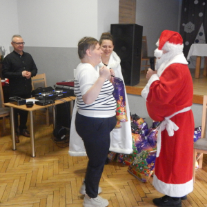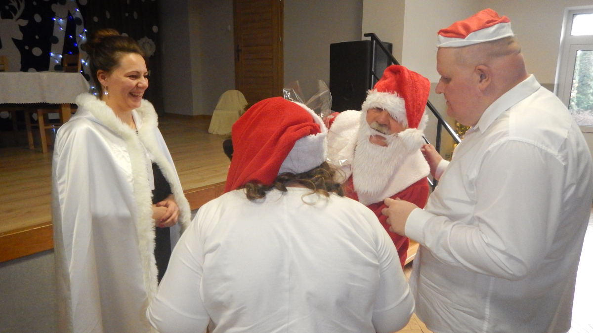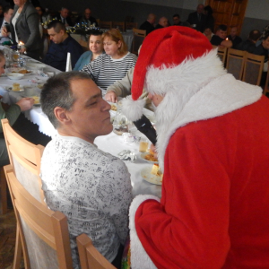W dniu 17.12.2025r. w Środowiskowym Domu Samopomocy odbyło się spotkanie wigilijne z udziałem zaproszonych gości, uczestników oraz członków ich rodzin. Spotkanie przebiegało w ciepłej i serdecznej atmosferze. Podczas spotkania zaprezentowane zostały jasełka przygotowane przez uczniów Szkoły Podstawowej im. rotmistrza Witolda Pileckiego w Ostrówku, które wprowadziły wszystkich w świąteczny nastrój. Ponadto podczas tego wydarzenia zostały zaśpiewane kolędy w wykonaniu naszych uczestników. Dodatkową atrakcją była wizyta św. Mikołaja, który wręczył uczestnikom prezenty, wywołując wiele radości i uśmiechu. Następnie wszyscy zasiedli do wspólnego wigilijnego stołu, składając sobie świąteczne życzenia, dzieląc się opłatkiem.