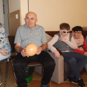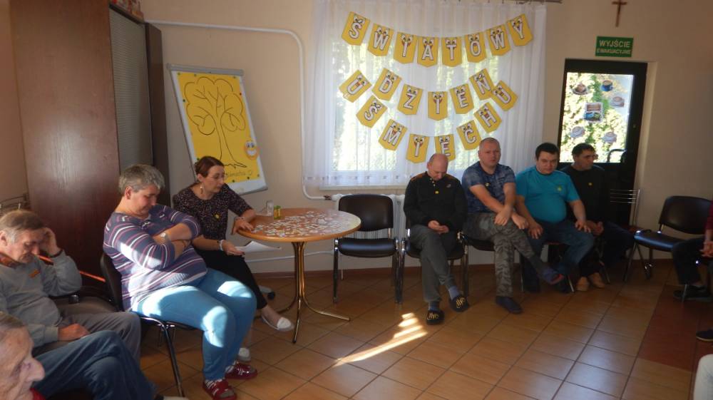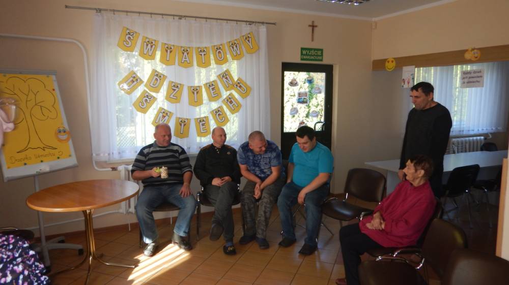 W dniu 21.10.2025r obchodziliśmy ŚWIATOWY DZIEŃ UŚMIECHU. Ideą tego dnia jest promowanie życzliwości, radości i niesienia dobra drugiemu człowiekowi poprzez prosty gest – uśmiech. W tym dniu były zorganizowane różne zabawy, quiz, opowiadane były śmieszne kawały i historyjki, podczas których na twarzach wszystkich towarzyszył uśmiech. Każdy z uczestników otrzymał drobny prezent - piłeczkę antystresową z dużym uśmiechem