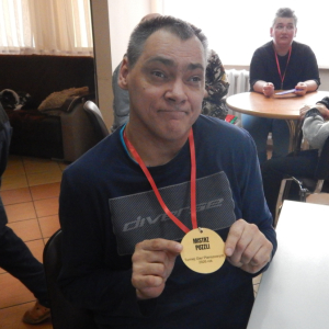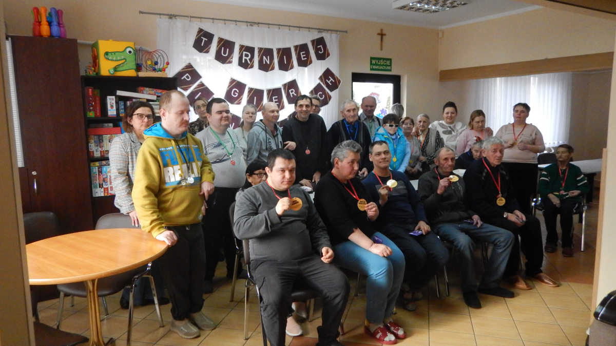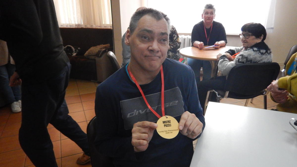 W Środowiskowym Domu Samopomocy zorganizowano turniej gier planszowych, którego celem była integracja uczestników, rozwijanie umiejętności społecznych oraz aktywne i twórcze spędzanie czasu wolnego. Uczestnicy brali udział w rozgrywkach różnych gier, dostosowanych do ich możliwości i zainteresowań, m.in. w chińczyka, bingo, rummbikub oraz w układaniu puzzli na komputerze na czas. Turniej stanowił doskonałą okazję do ćwiczenia koncentracji, logicznego myślenia, podejmowania decyzji oraz przestrzegania ustalonych zasad. Wspólna gra sprzyjała również nauce cierpliwości, komunikacji oraz radzenia sobie z emocjami towarzyszącymi wygranej i przegranej. Wydarzenie było dla uczestników źródłem dobrej zabawy, pozytywnych emocji i satysfakcji. Dla zwycięzców przewidziano nagrody i medale, natomiast każdy uczestnik otrzymał drobny upominek.