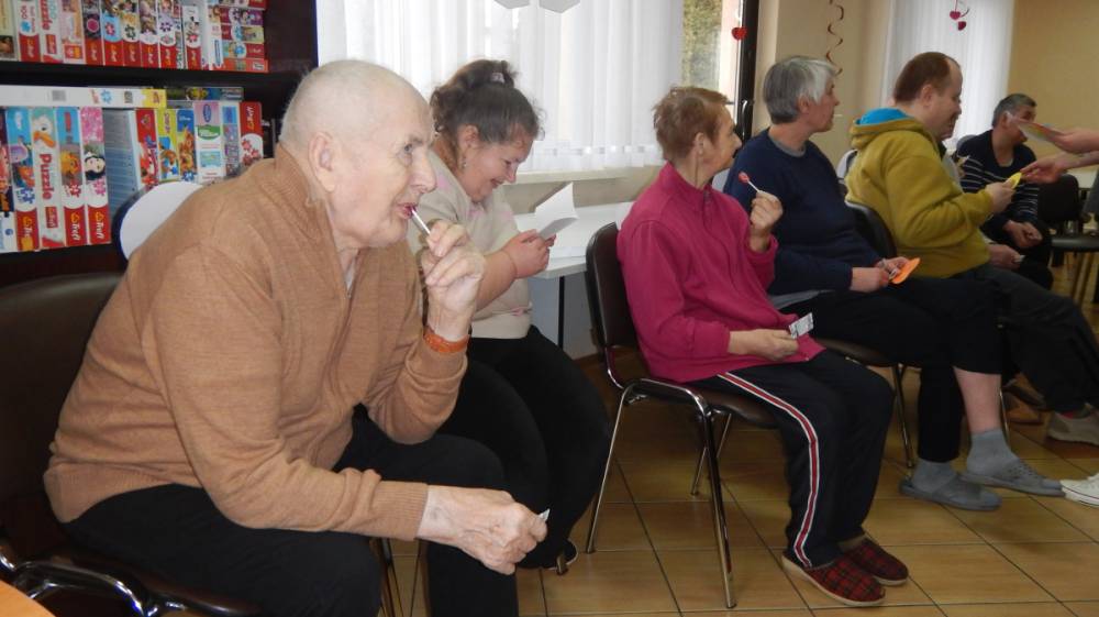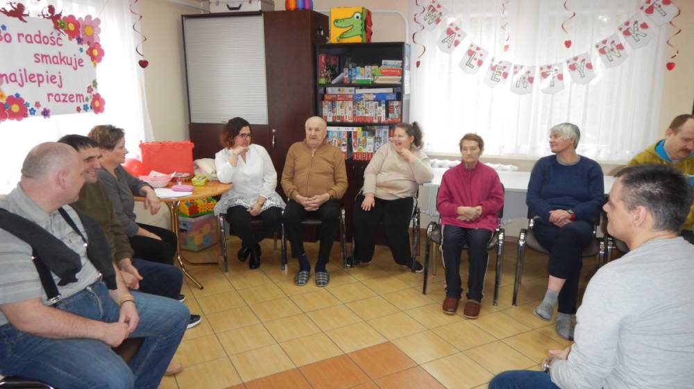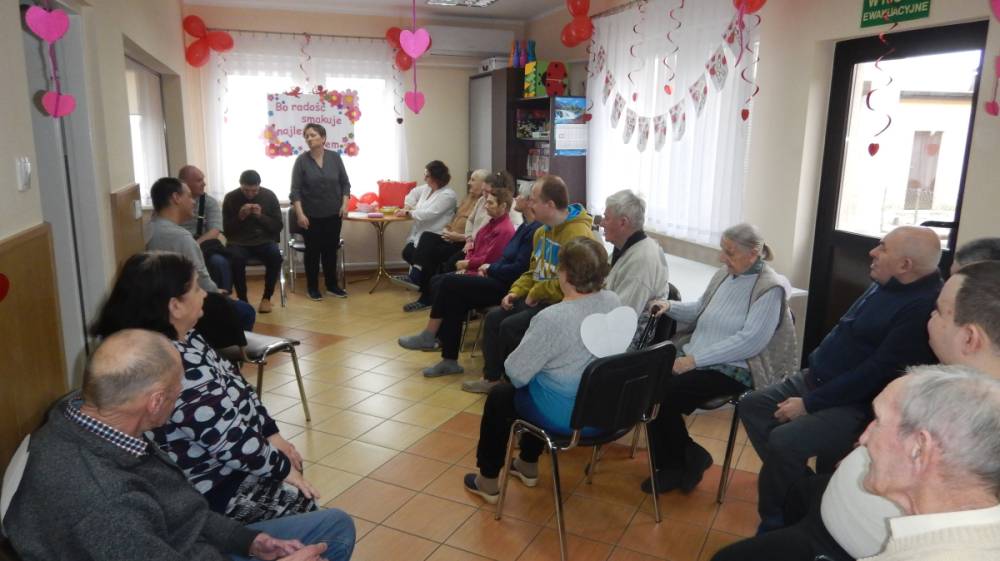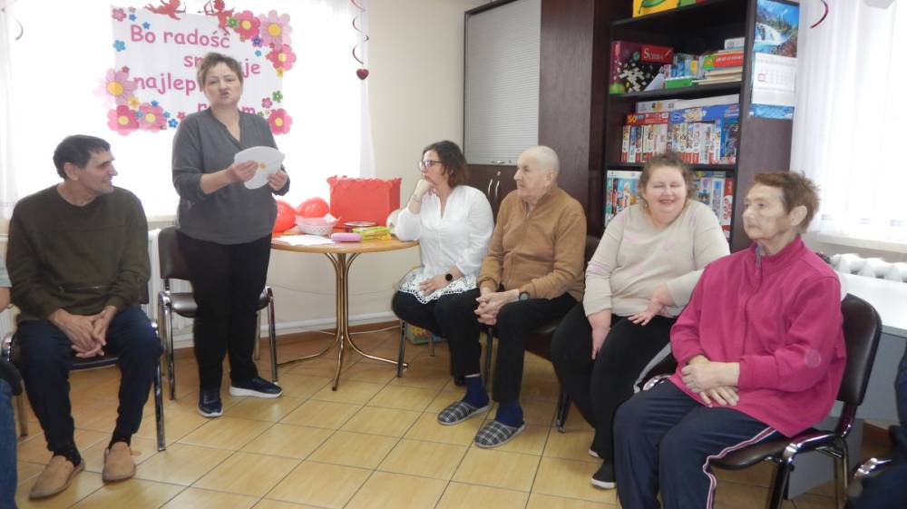 W dniu 16 lutego w Środowiskowym Domu Samopomocy odbyły się zajęcia z okazji Walentynek. Święto to przypada 14 lutego, jednak w tym roku wypadło w sobotę, dlatego obchody w ŚDS zostały zorganizowane w poniedziałek. Celem spotkania było wzmacnianie relacji koleżeńskich, rozwijanie życzliwości oraz integracja uczestników. Spotkanie rozpoczęło się krótką rozmową na temat tradycji walentynkowych oraz znaczenia przyjaźni, miłości i okazywania sympatii innym osobom. Następnie uczestnicy wzięli udział w grach i zabawach tematycznych. Dużym zainteresowaniem cieszyła się „Poczta Walentynkowa” – kartki zostały przygotowane przez uczestników wcześniej, podczas różnych zajęć a w dniu spotkania zostały uroczyście wręczone adresatom.